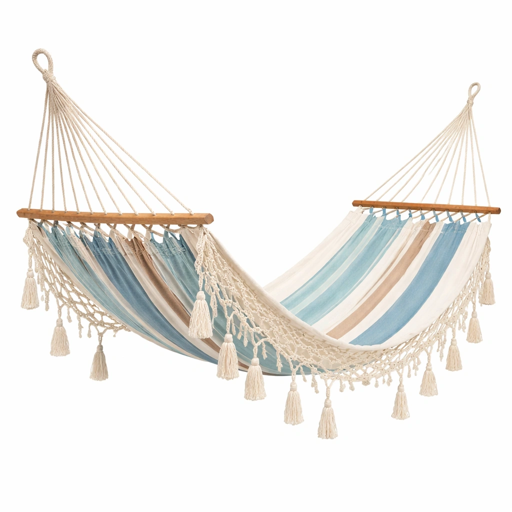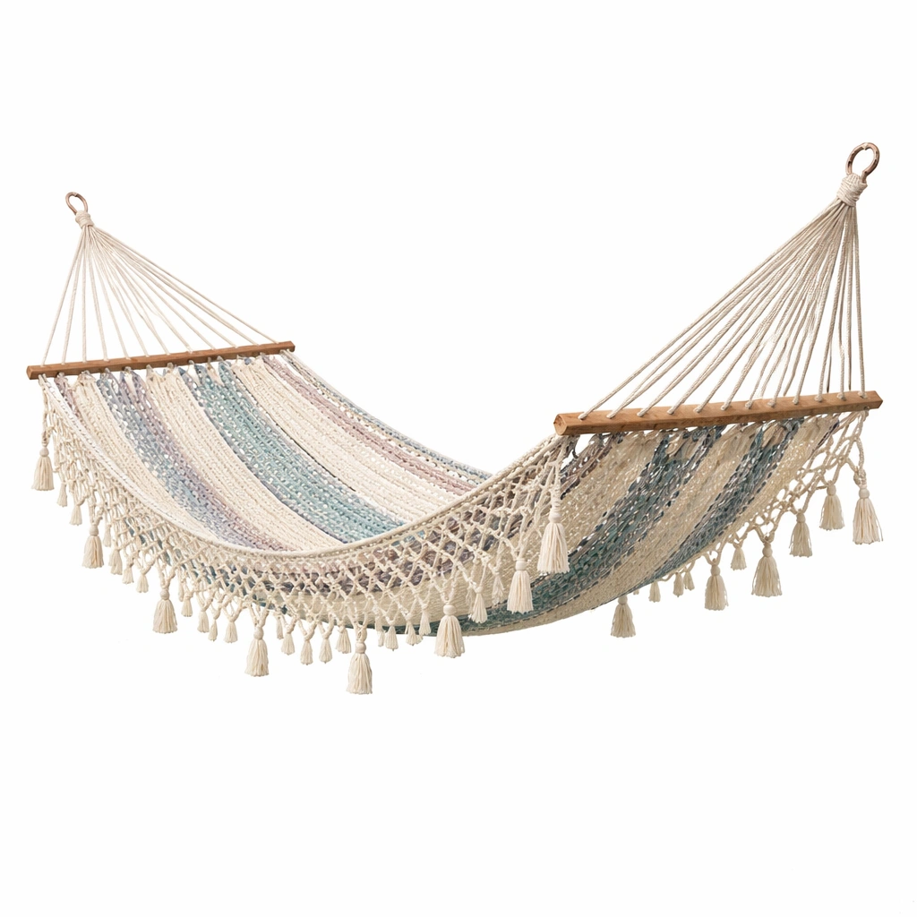 Hamaca de algodón tejida con flecos