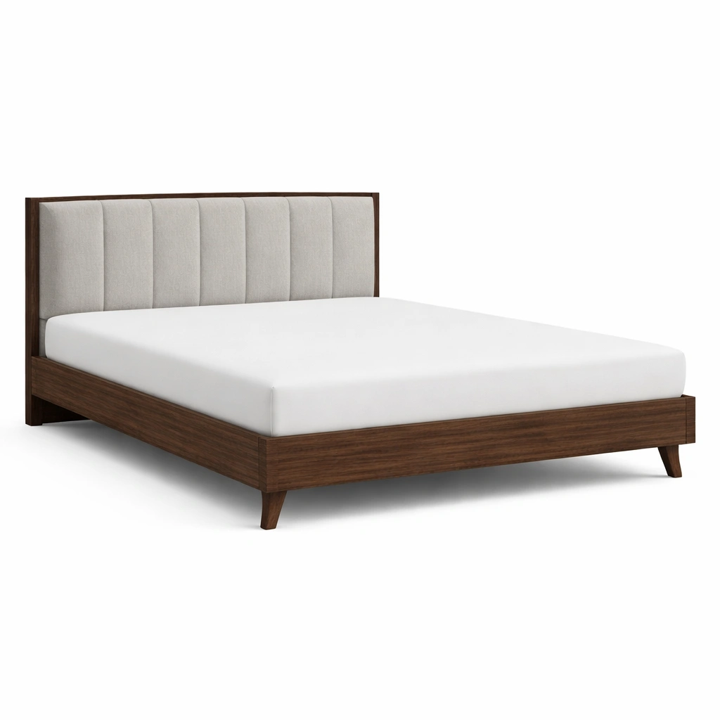 Material: Estructura de madera maciza, cabecero tapizado en tela de poliéster